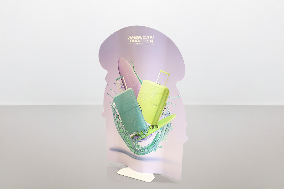 Das Display ist beidseitig bedruckt und daher ideal für den Einsatz im offenen Raum geeignet. Dieses Display kann auf vielfältige Weise kreativ eingesetzt werden und ist in Höhen von 15 cm bis 190 cm erhältlich.