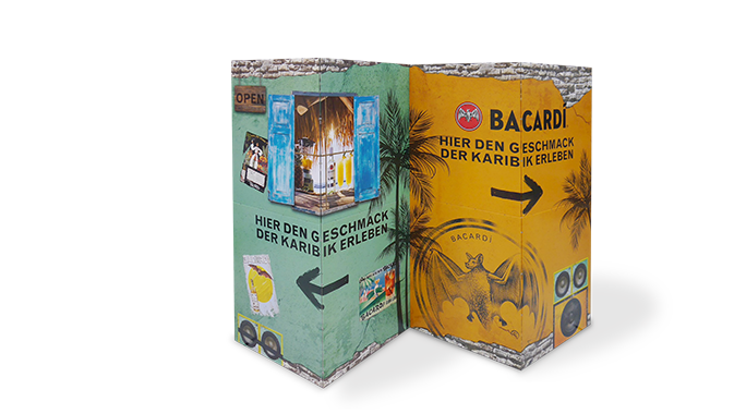 Mit unseren Messewänden aus Pappe haben Sie die Möglichkeit Ihre ganz persönliche Werbewand für Ihren Messewand zu erstellen. Eine Werbewand aus Pappe ist eine echte Alternative zu herkömmlichen Werbewänden und dient als flexible Lösung zur Schaffung von Kommunikationsräumen oder zur Abschirmung für geschäftliche Gespräche. Die Messewände können mit Ihrem eigenen Druck versehen werden, für ein einzigartiges Designkonzept auf der Messe.
